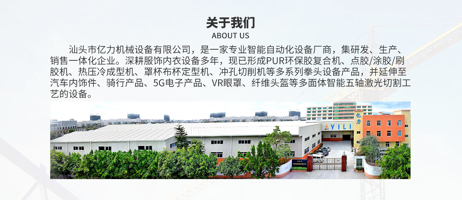 汕頭市億力機械設備有限公司網站正式上線! 汕頭市億力機械設備有限公司是一家集研發、生產銷售于一體的專業性面料貼合機械、胸圍模杯機械、無縫工藝鞋面機械、口罩生產線和焊耳帶機械企業。